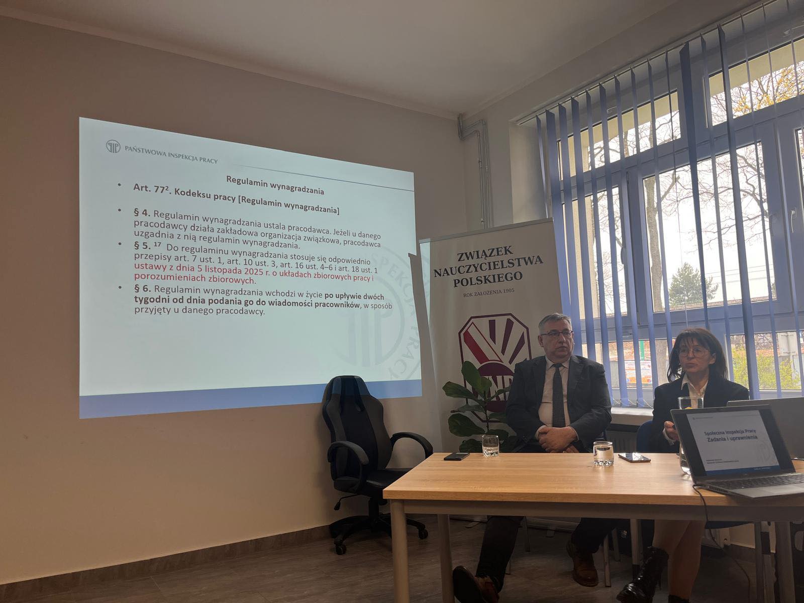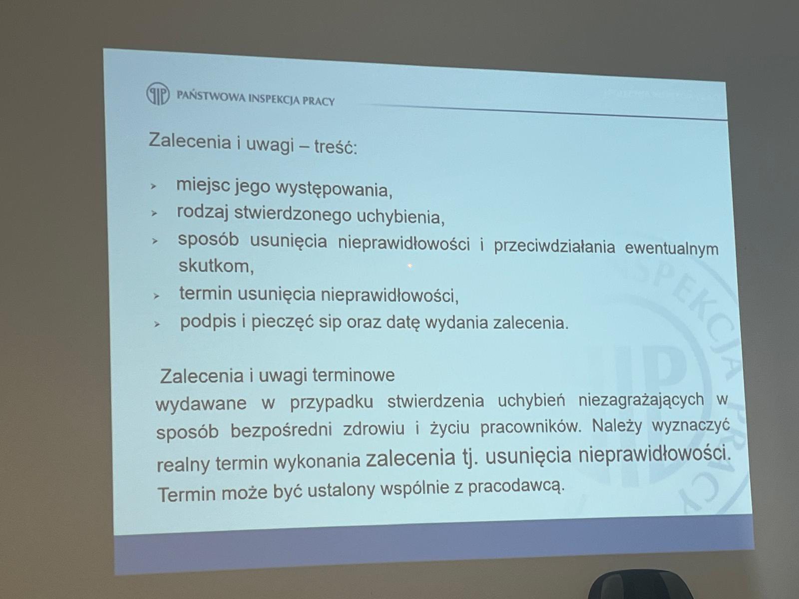 Prelekcję poprowadzili eksperci z Okręgowego Inspektoratu Pracy w Katowicach – Pani Katarzyna Rozlach oraz Pan Waldemar Wachura, którzy podzielili się swoją wiedzą i doświadczeniem, odpowiadając również na pytania uczestników.